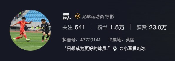 開啟留洋之路,徐彬社媒IP地址已顯示在英國