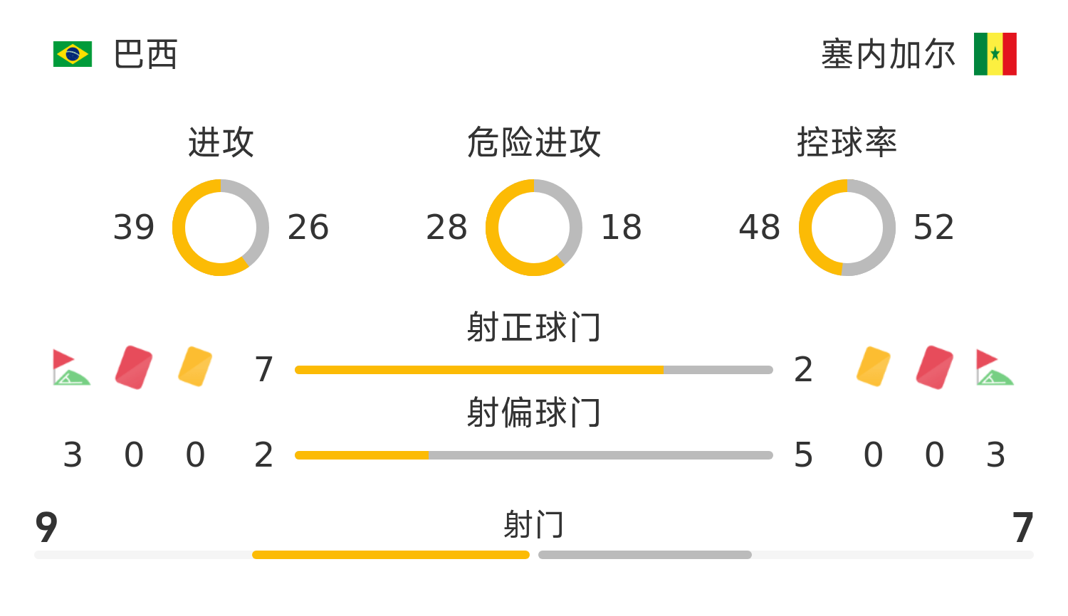 巴西首發(fā)陣容:23-埃德森、6-桑德羅、4-馬爾基尼奧斯、2-米利唐、3-加布里埃爾、5-卡塞米羅、8-吉馬良斯、7-維尼修斯、21-庫(kù)尼亞、10-羅德里戈、20-埃斯特旺