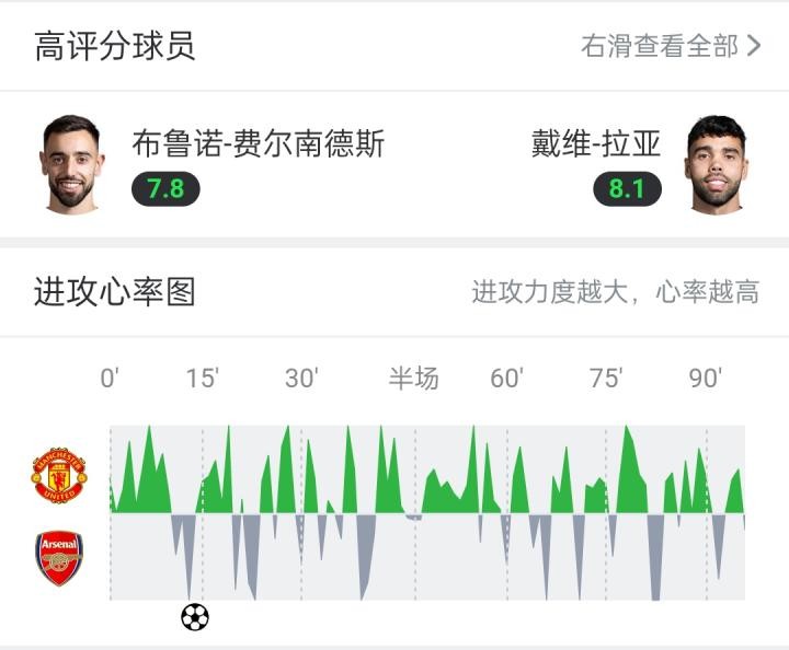 按照“進攻心率圖”,曼聯(lián)和阿森納的表現(xiàn)是這樣的: