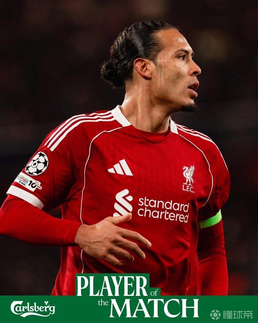 利物浦官方宣布,范戴克當(dāng)選球隊(duì)與卡拉巴赫一役隊(duì)內(nèi)最佳球員。