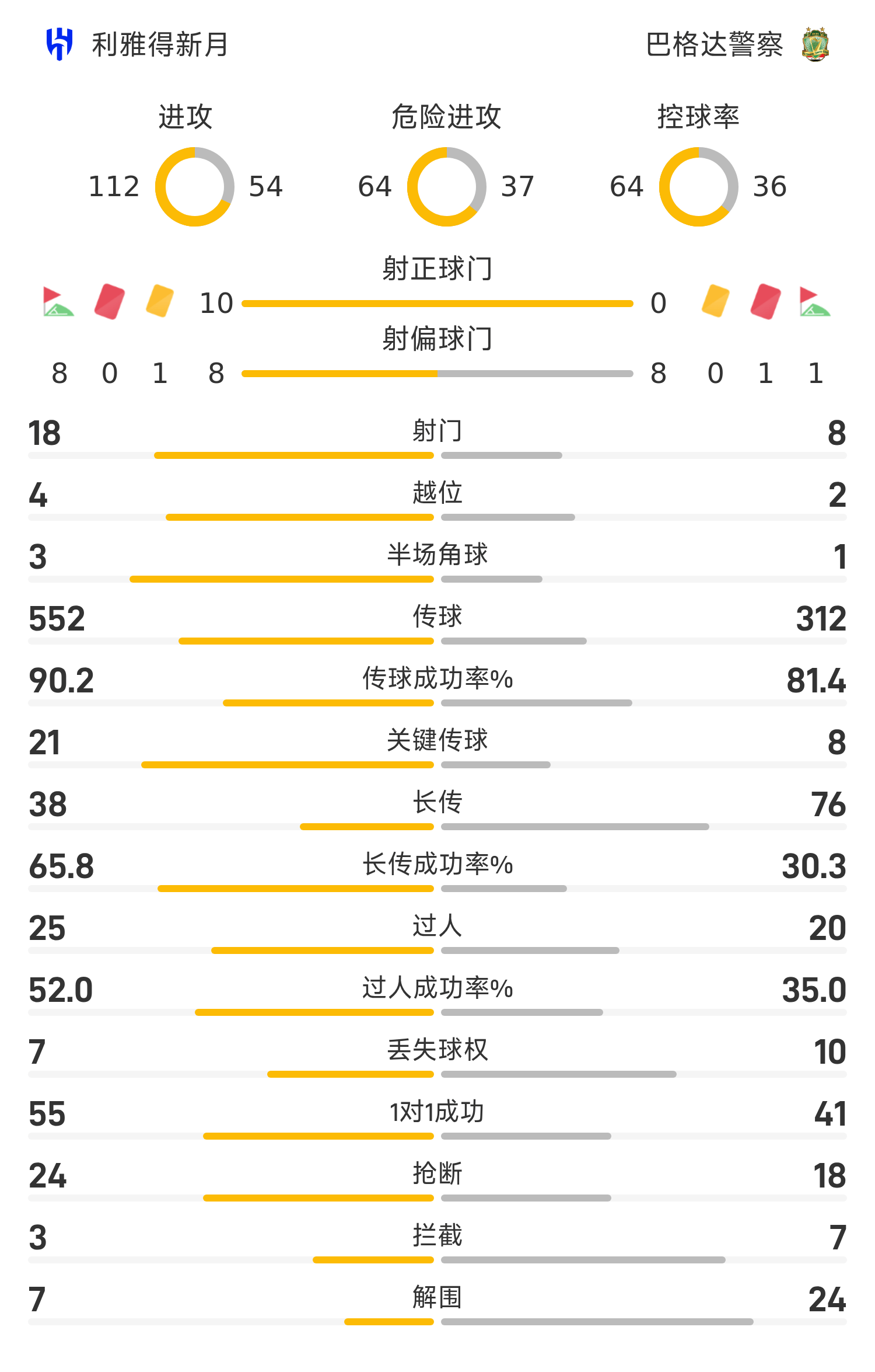 45’馬爾科姆傳中,萊昂納多頭球破門,利雅得新月1-0巴格達警察