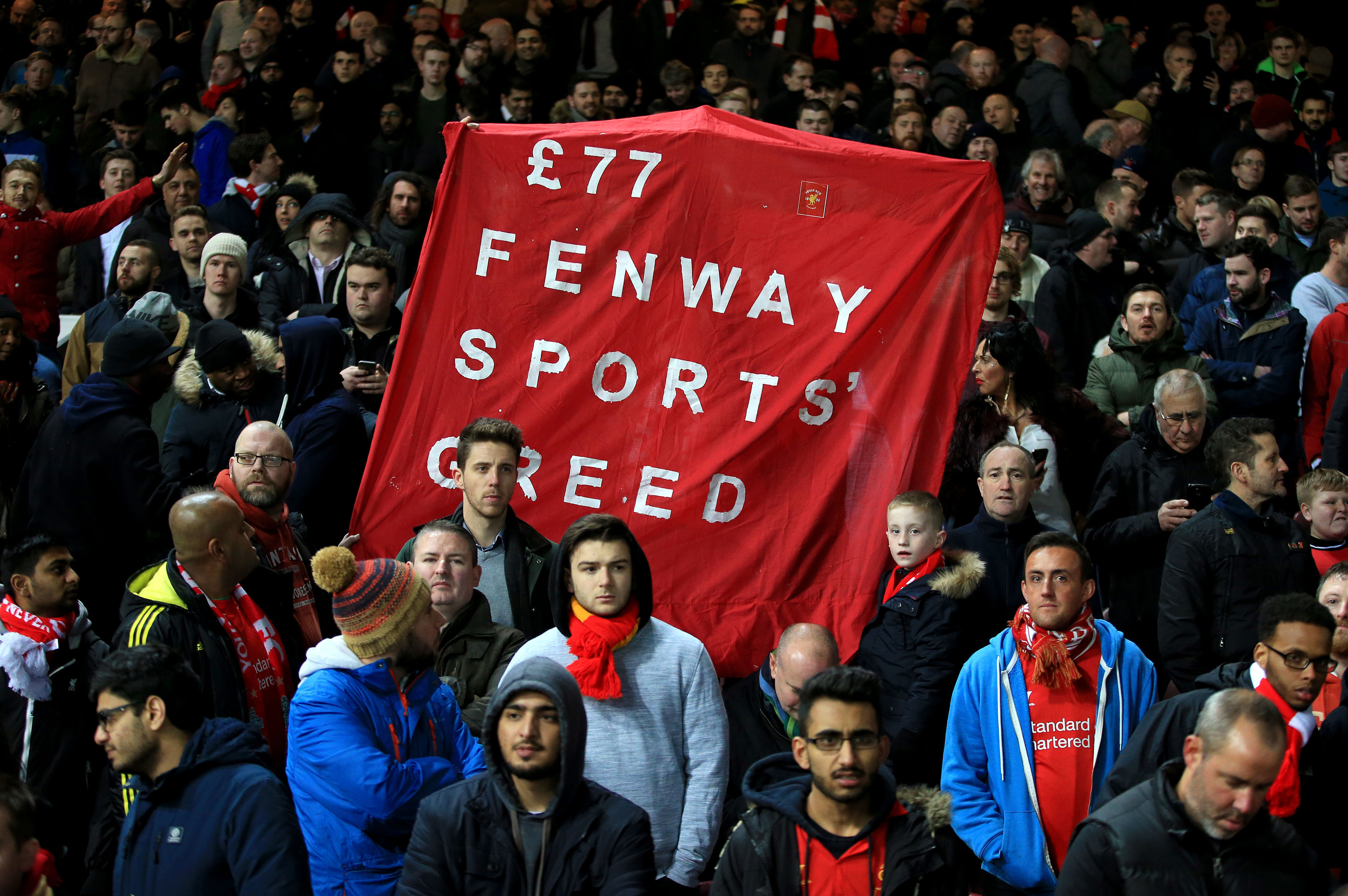 2016年利物浦球迷抗議漲價標語