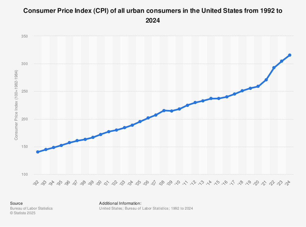 美國1992-2024城市消費者物價指數(shù)走勢