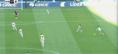 第16分鐘,巴坎布補(bǔ)射得分,皇家貝蒂斯1-0領(lǐng)先