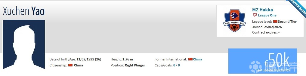么旭辰現(xiàn)年26歲,司職中場,此前球員效力于長春亞泰,期間共出場13次,貢獻1次助攻。在2025賽季夏窗球員租借加盟青島紅獅,期間共出場12次?,F(xiàn)在他在德轉(zhuǎn)上的身價為5萬歐元。