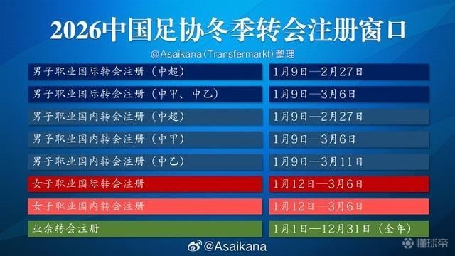北京時間2月27日,據(jù)德國轉(zhuǎn)會市場亞洲區(qū)管理員朱藝@Asaikana 消息,2026中超冬季轉(zhuǎn)會注冊窗口將于今日24時關(guān)閉。