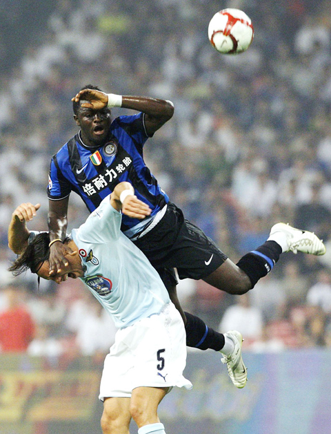 2006年國(guó)際米蘭主場(chǎng)對(duì)陣?yán)种Z身著印有中文倍耐力輪胎的球衣