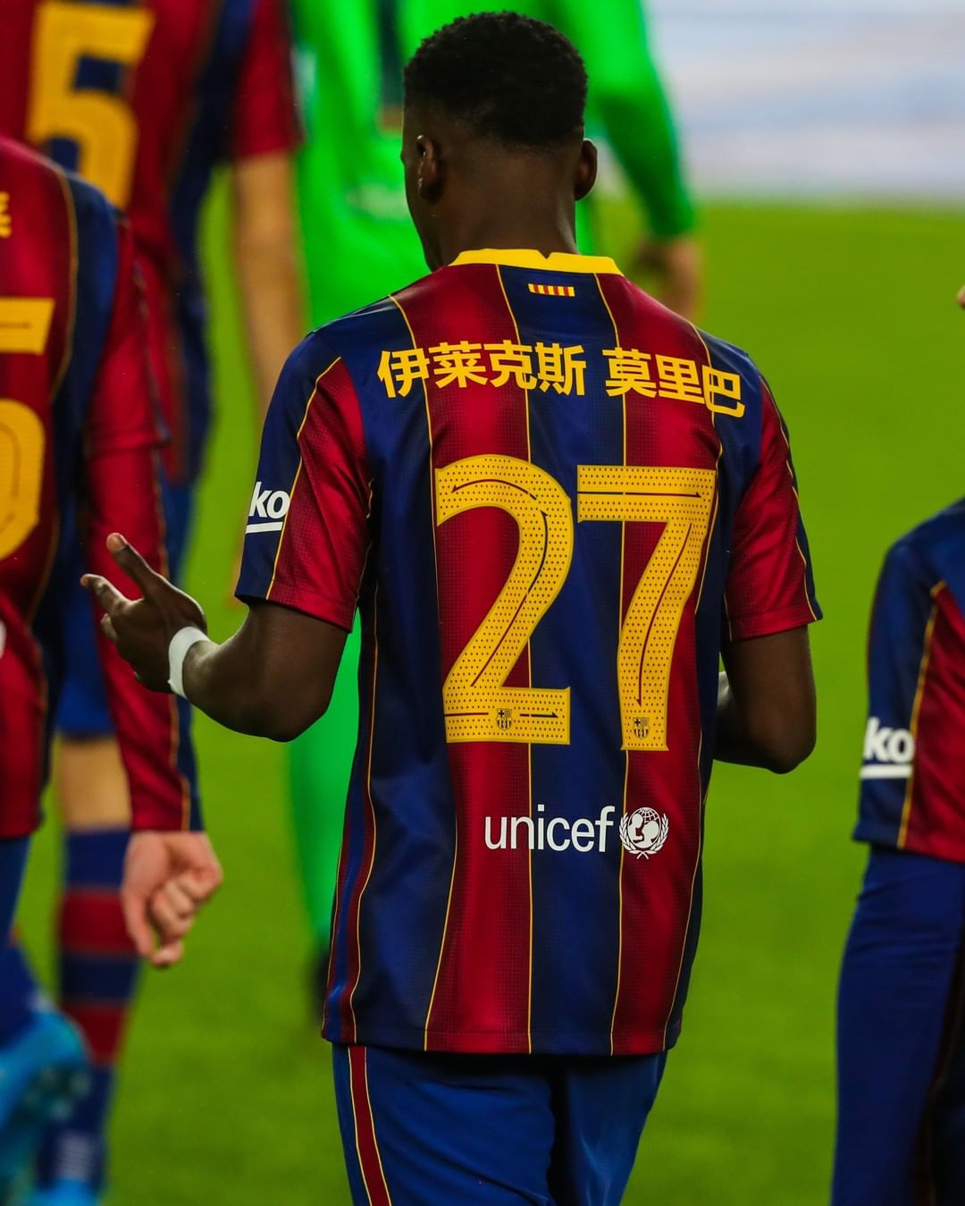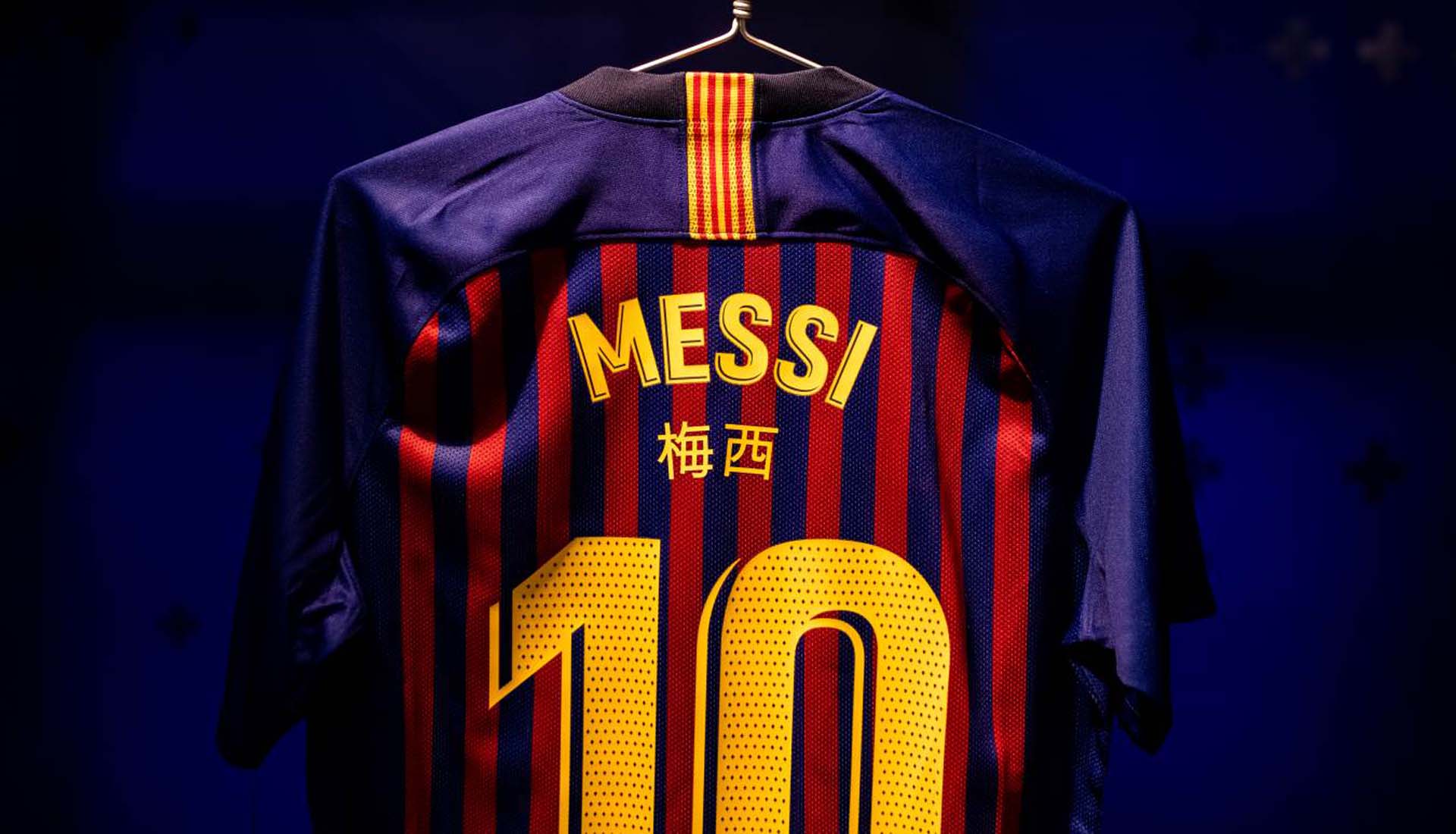 2018/19賽季的國(guó)家德比前,巴塞羅那所展示的中文印字球衣