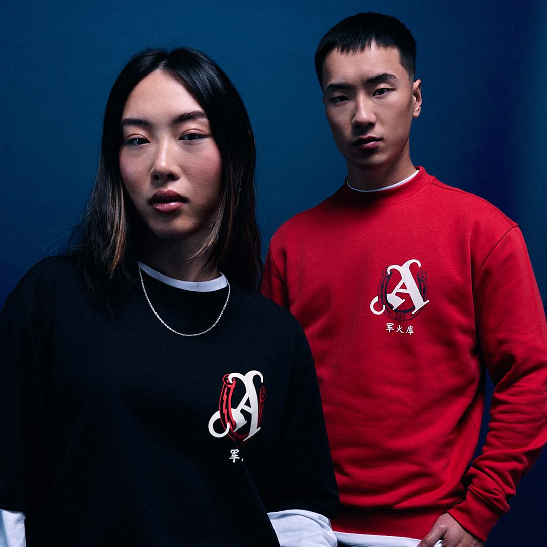 阿森納今年的系列便是例子,作為一個(gè)常年在生活服飾領(lǐng)域發(fā)力的俱樂(lè)部,他們推出的新年服飾系列更傾向于一種純粹的品牌延展。所謂的“馬年元素”在這里被處理得極其簡(jiǎn)單,更像是在標(biāo)準(zhǔn)的衛(wèi)衣和 T 恤上進(jìn)行了一次季節(jié)性蓋章。這種做法固然穩(wěn)妥,但也讓人們對(duì)這類“流水線誠(chéng)意”產(chǎn)生了一定的審美免疫。