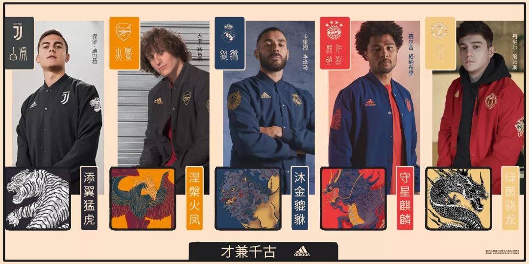 真正的行業(yè)分水嶺出現(xiàn)在 2019/20 賽季。阿迪達(dá)斯首次為旗下多支頂級(jí)俱樂(lè)部,包括曼聯(lián)、阿森納、皇家馬德里、尤文圖斯與拜仁慕尼黑,系統(tǒng)推出春節(jié)系列。這批產(chǎn)品以黑金或深色緞面為基調(diào),結(jié)合生肖和東方神話意象進(jìn)行刺繡或印花設(shè)計(jì),形成跨俱樂(lè)部、跨市場(chǎng)同步發(fā)售的膠囊系列。相比此前零散的節(jié)慶單品,這種統(tǒng)一企劃與矩陣式發(fā)布標(biāo)志著春節(jié)元素首次被工業(yè)化納入歐洲豪門的年度產(chǎn)品規(guī)劃。